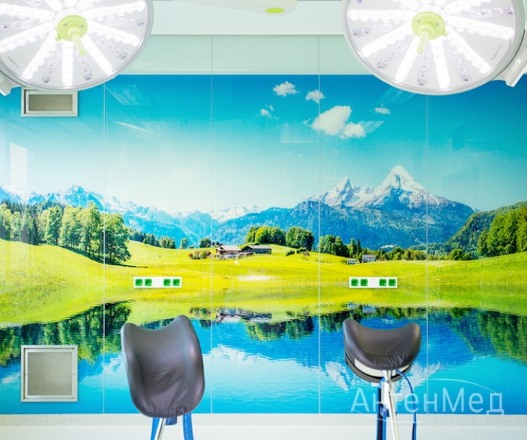 Дизайн операционной можно разнообразить цветовыми вставками, принтами и